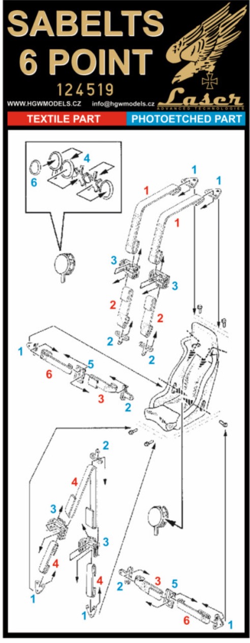 HGW - 1/24 Seatbelts Sabelts 6 point Black laser