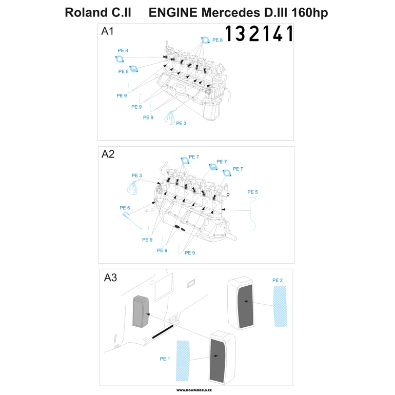 HGW - 1/32 Roland C.II - Mercedes D.III 160 hp PE sets (for Wingnut Wings kits)