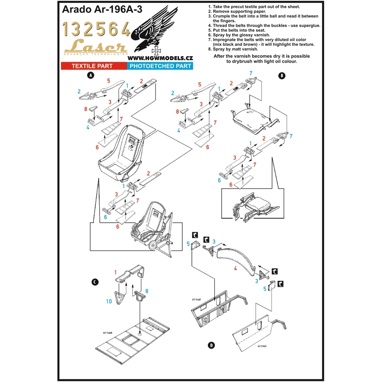 HGW - 1/32 Arado Ar 196A-3 seats x 2 with pre-cut (laser) Seat Belts (designed to be used with Revell kits)