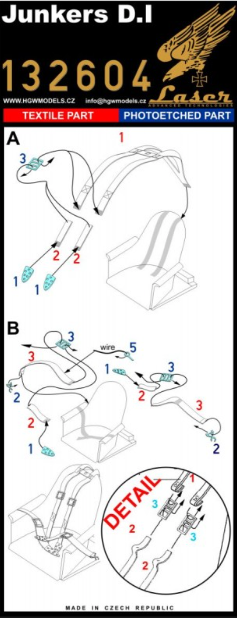 HGW - 1/32 Junkers D.I pre-cut (laser) seatbelts(for Wingnut Wings kits)