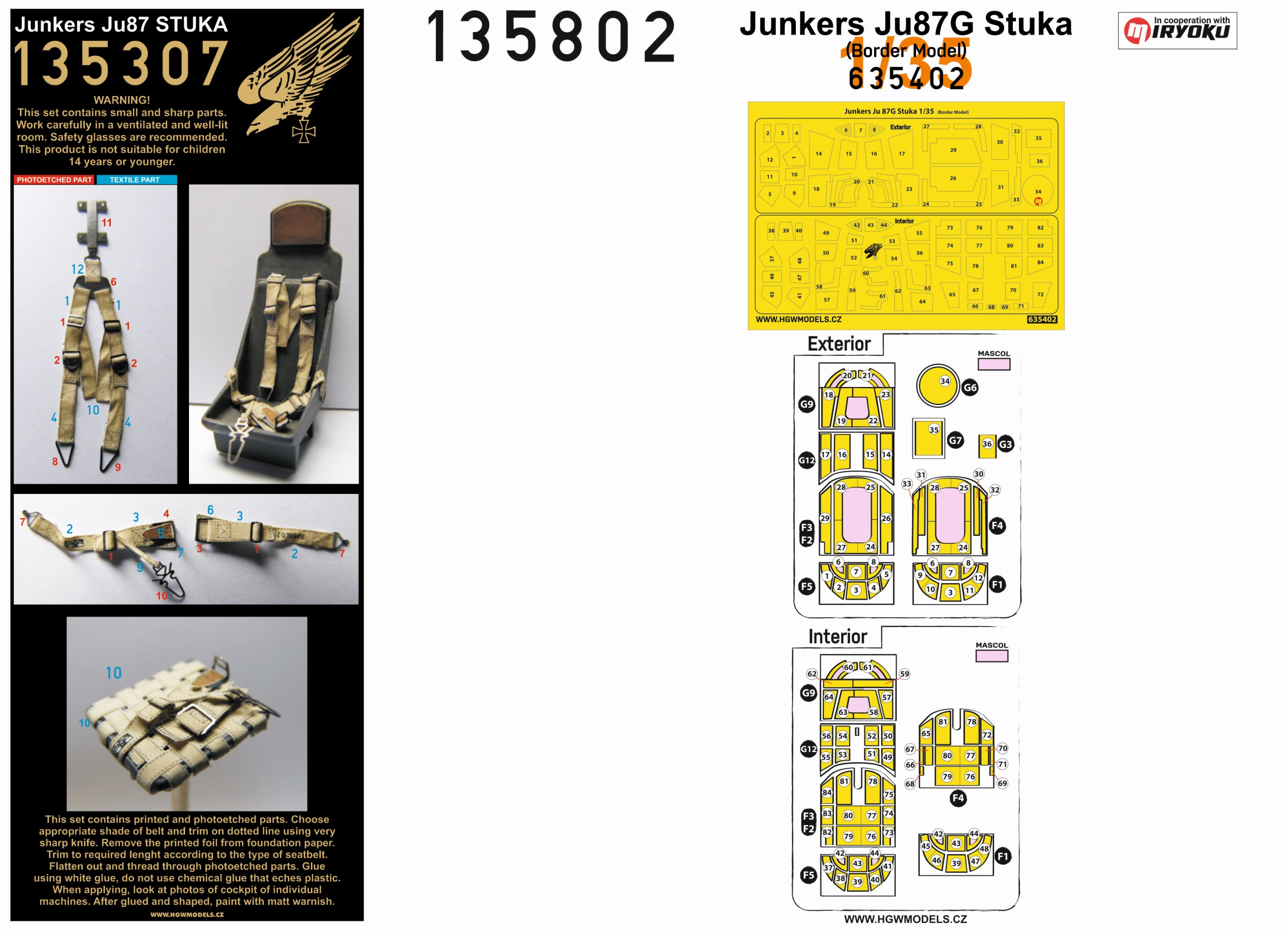 HGW - 1/35 Junkers Ju-87 'Stuka' Basic LINE: seatbelts + canopy frame paint masks inside and outside (for Border Model kits)