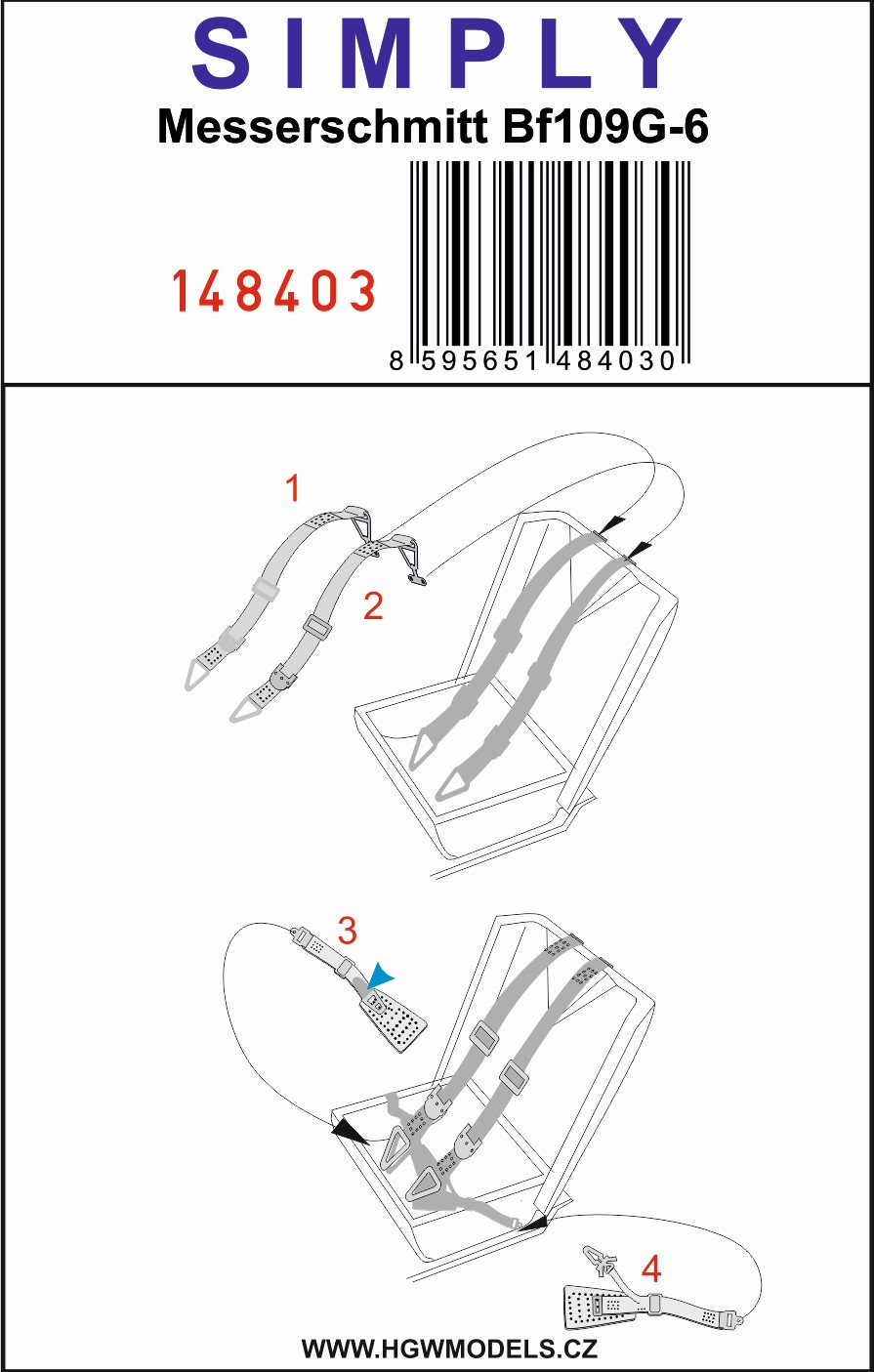 HGW - 1/48 Messerschmitt Bf-109G-6 Simply Edition Relief Print Seatbelts