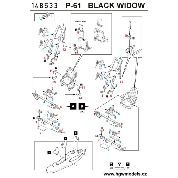 HGW - 1/48 Northrop P-61A/P-61B 'Black Widow' - SEATBELTS. Seat belts, suitable for P-61 Black Widow, are made from micro-plastic foil. In combination with attached photo etched buckles this accesorry looks highly realistic. These are available in 1/48 scale and for more comfortable work they are pre-cut. (designed to be used with Great Wall, Monogram and Revell kits)