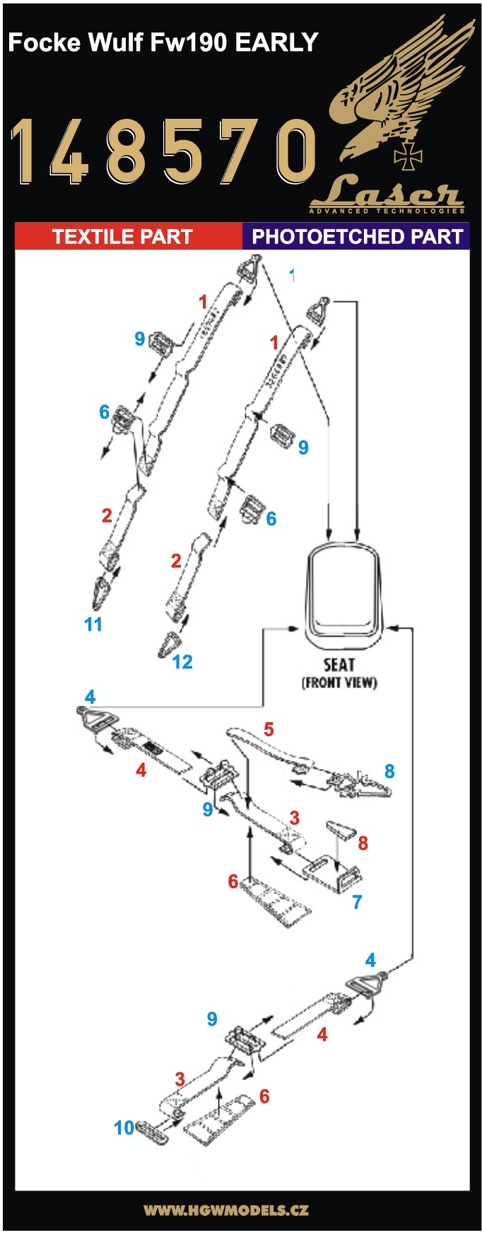 HGW - Focke-Wulf Fw-190 Early pre-cut (laser) Seatbelts 1/48