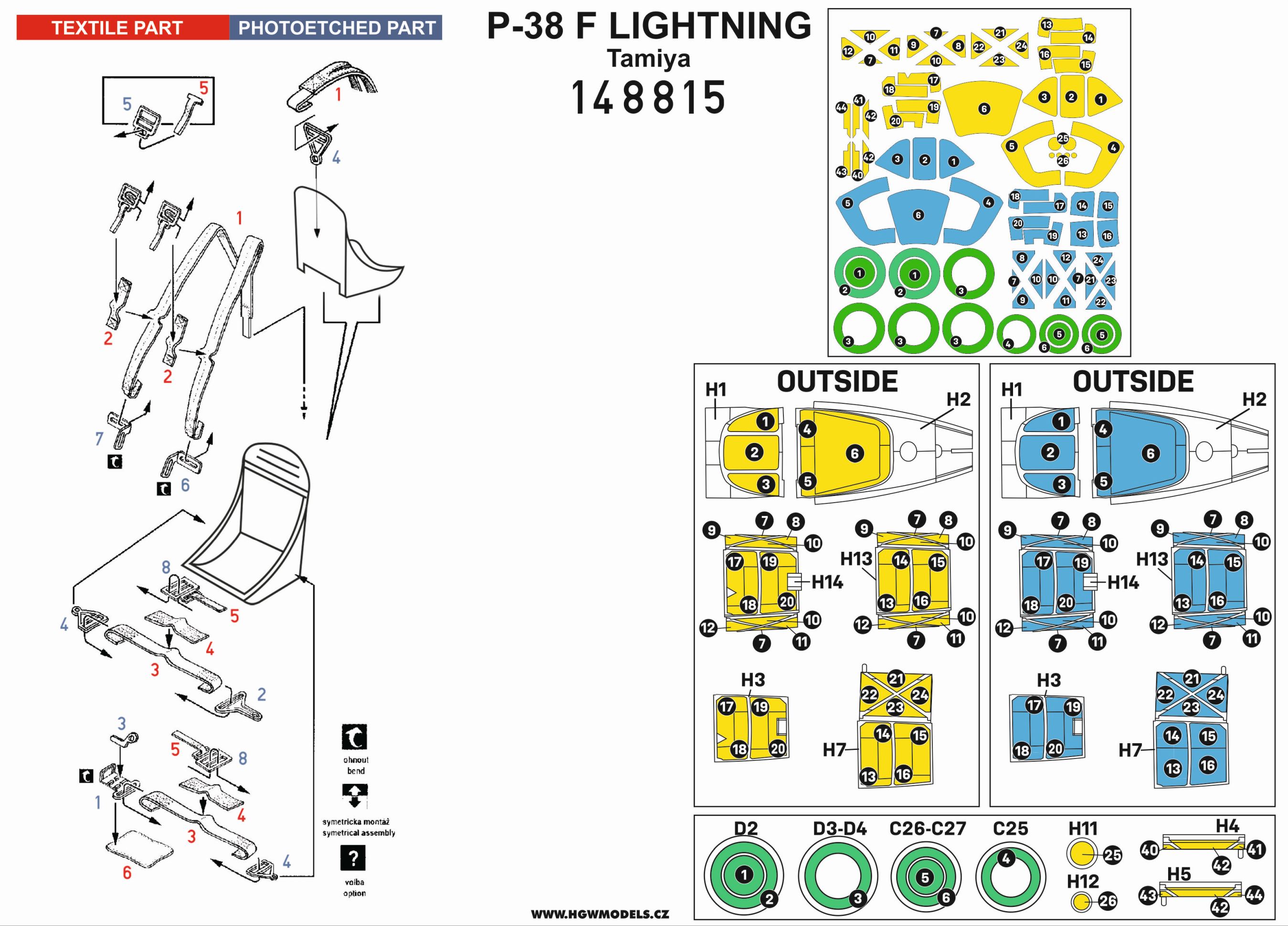 HGW - 1/48 Lockheed P-38F/G Lightning Basic LINE: seatbelts + masks (for Tamiya kits)