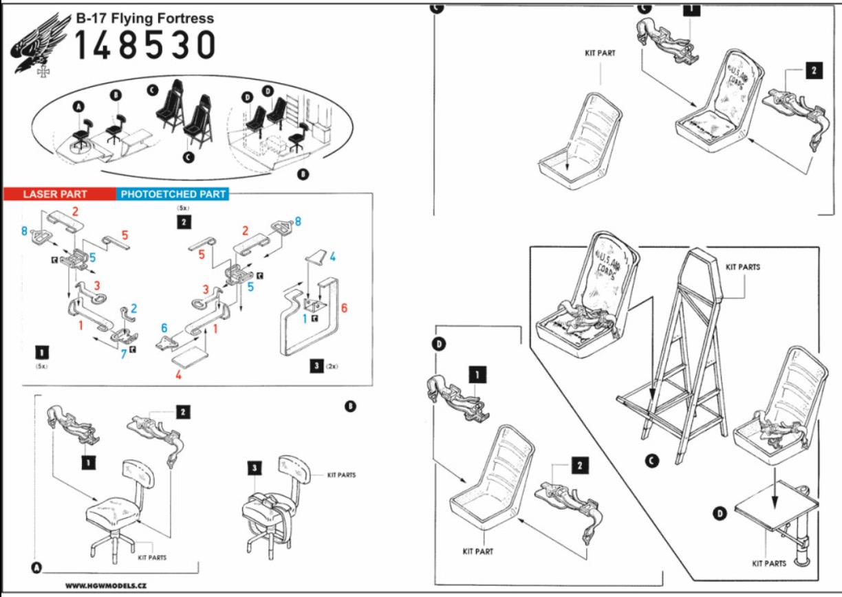 HGW - 1/48 Boeing B-17F Flying Fortress Seat belts & Paint masks Basic Line for Eduard and Hong Kong