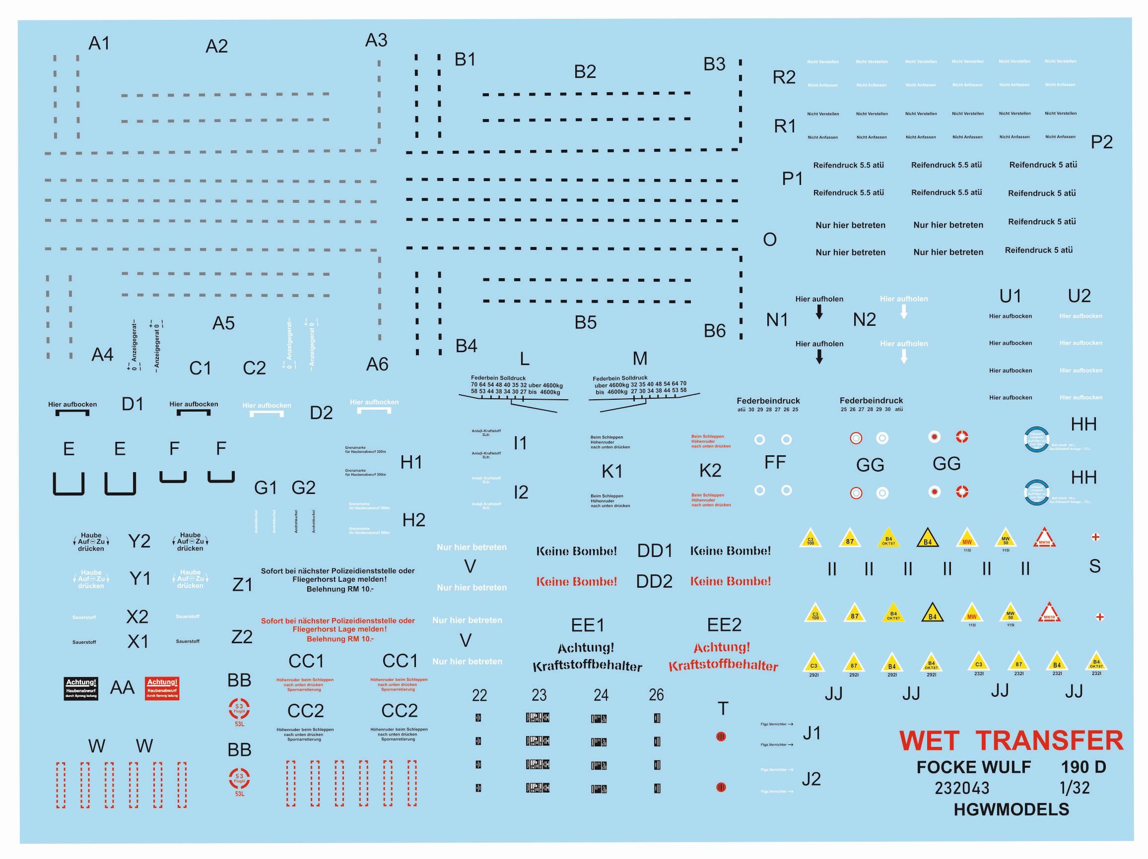 HGW - 1/32 Decals Focke Wulf Fw190D-9 Stencils