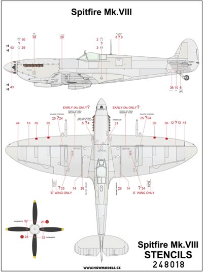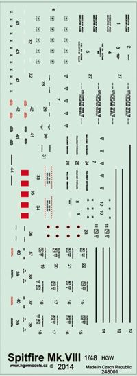HGW - 1/48 Spitfire Mk.VIII Stencils Eduard Wet Transfers
