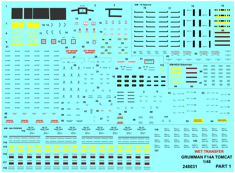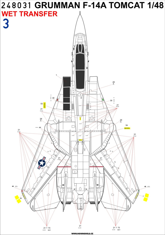 HGW - 1/48 Grumman F-14A Tomcat Stencils + RBF stencils + both sided RBF (Easybelts techn.) Wet Transfers (for Avant garden, Fujimi, Hasegawa, Hobby Boss, Italeri, Monogram, Revell and Tamiya kits)