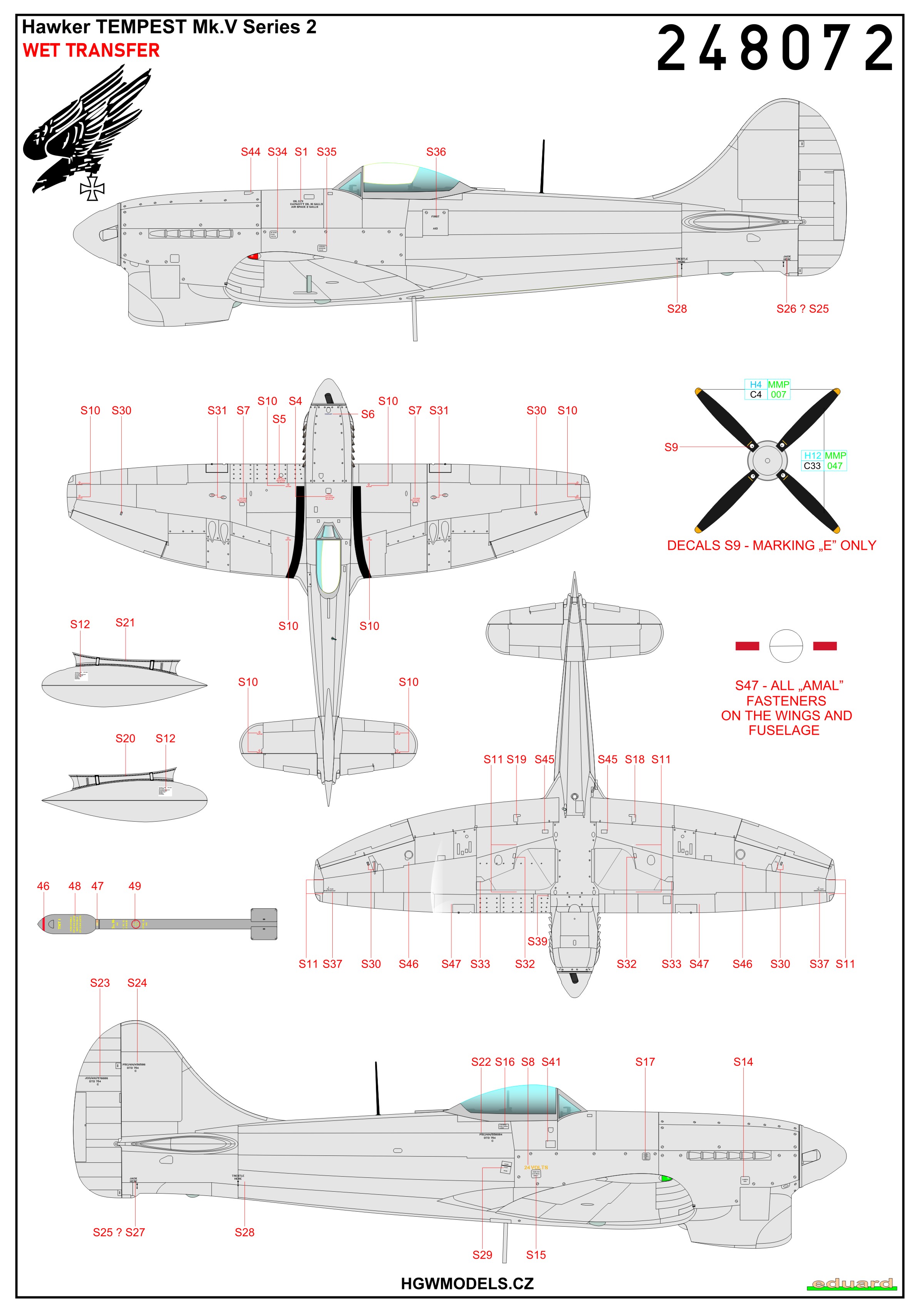 HGW - 1/48 Hawker Tempest Mk.V Series 2 - Stencils (for Eduard kits)