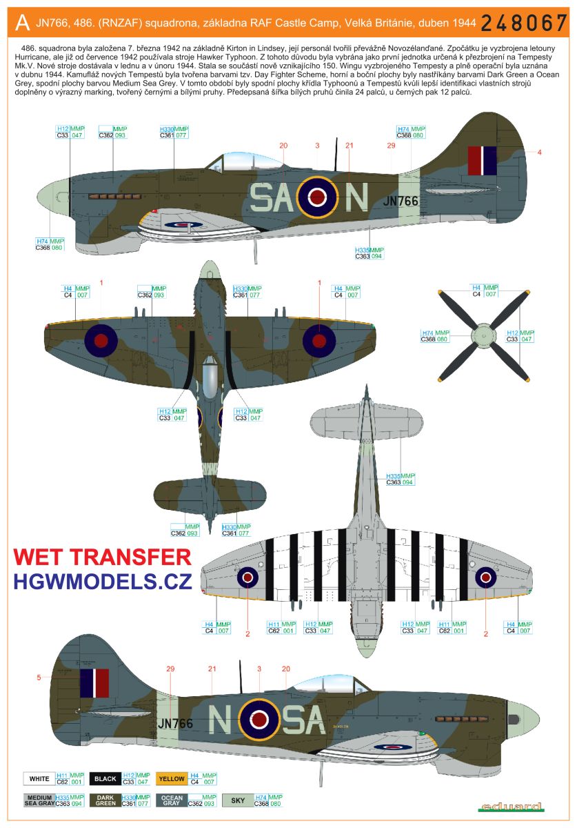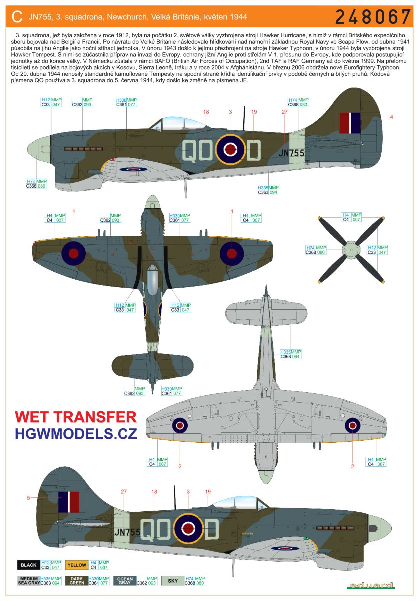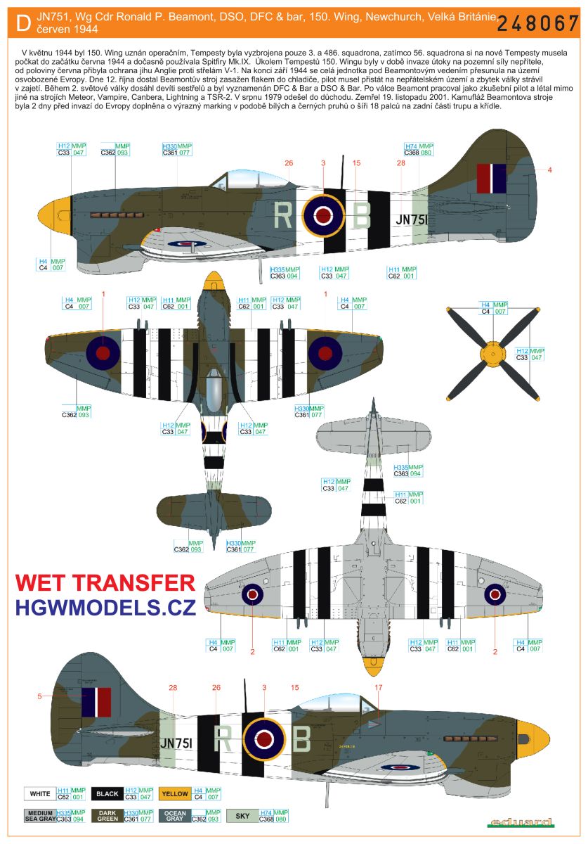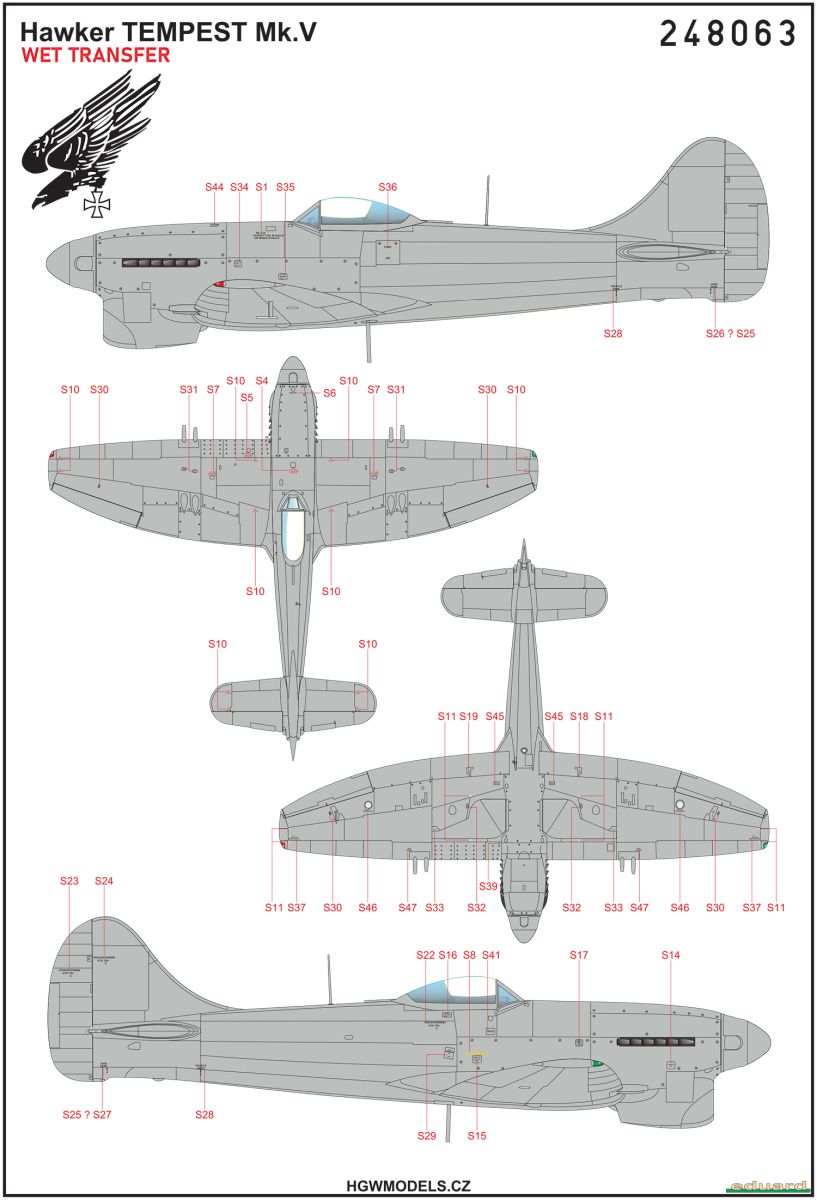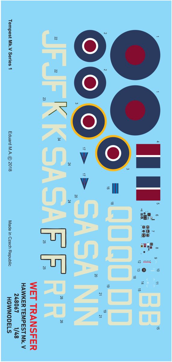 HGW - 1/48 Hawker Tempest Mk.V Series 1 (for Eduard kits) Wet Transfers