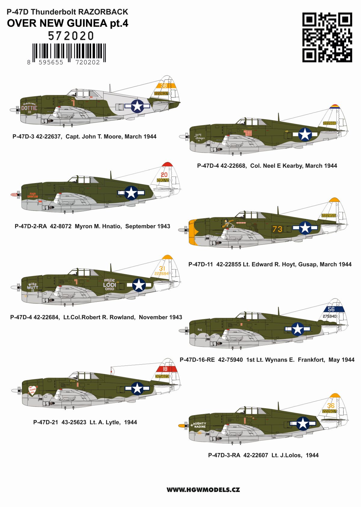 HGW - 1/72 Republic P-47D Thunderbolt Razorback Over New Guinea Standard Decals