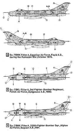 HI Decal - 1/72 Sukhoi Su-7BKL/BMK Fitter A (7) Red 57 Soviet Air Force 1975, Egyptian Air Force 1976, Egyptian Air Force Ramadan War 1973, Red 807 3rd FB Regt Poland, Red 420 335FBS Afghan Air Force 1981, Syrian Air Force Ramadan War, Black 335 Algerian Air Force Ramadan War.
