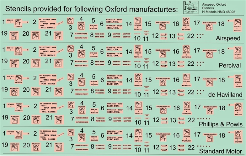 HM DECALS - 1/48 Stencils Airspeed Oxford (for 5 aircraft)