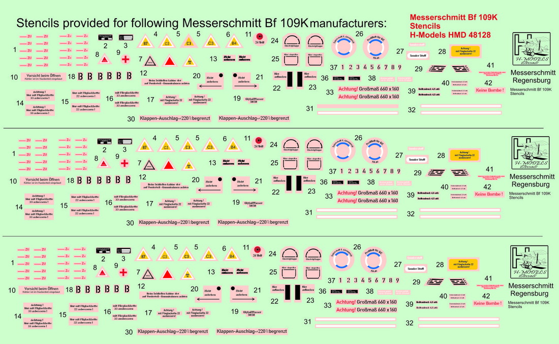 H-Model Decals - 1/48 Messerschmitt Bf-109K-4/Bf-109K-6/Bf-109K-10/Bf-109K-14 Stencils