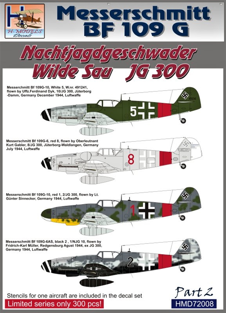 HM DECALS - 1/72 Decals Bf 109G JG 300 Wilde Sau - Part 2