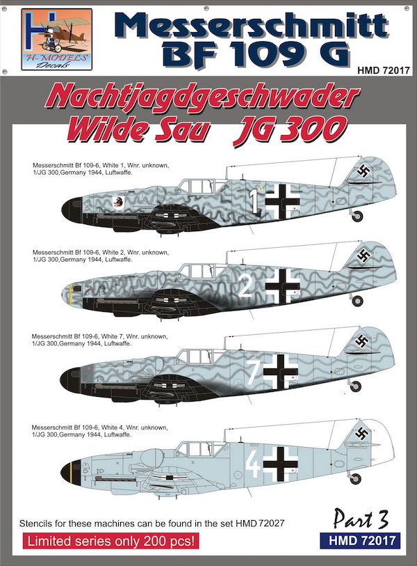 H-Model Decals - 1/72 Messerschmitt Bf 109G NJGschw Wilde Sau JG300, Pt.3