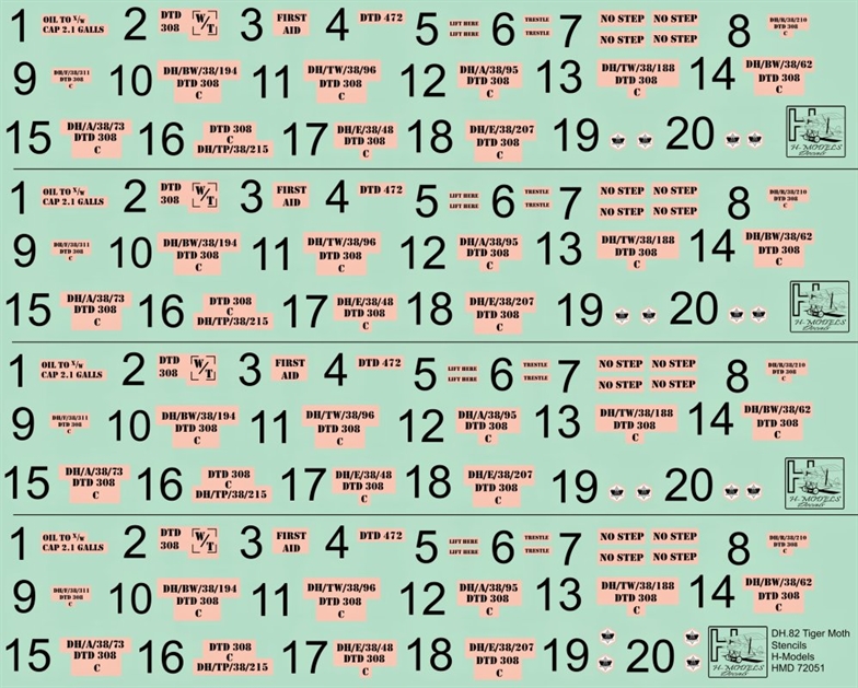 HM DECALS - 1/72 Stencils DH 82 Tiger Moth (for 4 aircraft)