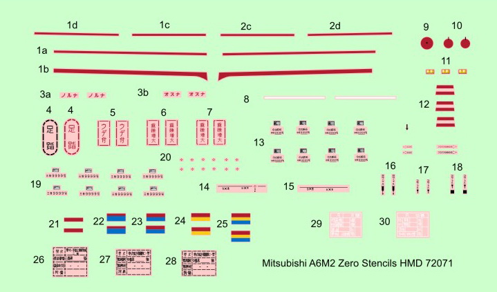 HM DECALS - 1/72 Stencils Mitsubishi A6M2 Zero