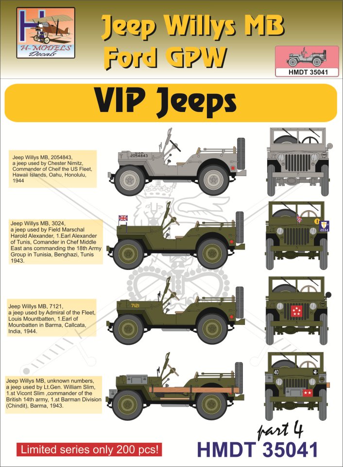 HM DECALS - 1/35 Decals Jeep Willys MB/Ford GPW VIP Jeeps 4