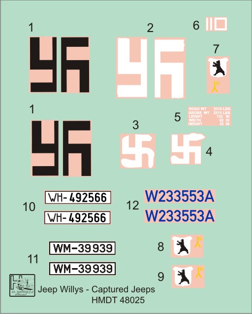 HM DECALS - 1/48 Decals Jeep Willys MB/Ford GPW Captured Jeeps