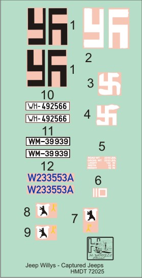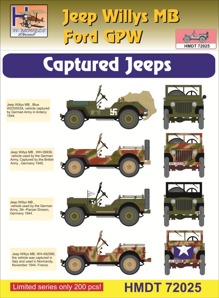 HM DECALS - 1/72 Decals Jeep Willys MB/Ford GPW Captured Jeeps