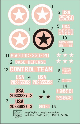 HM DECALS - 1/72 Decals Jeep Willys MB/Ford GPW in USAAF service