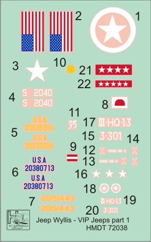 HM DECALS - 1/72 Decals Jeep Willys MB/Ford GPW VIP Jeeps 1