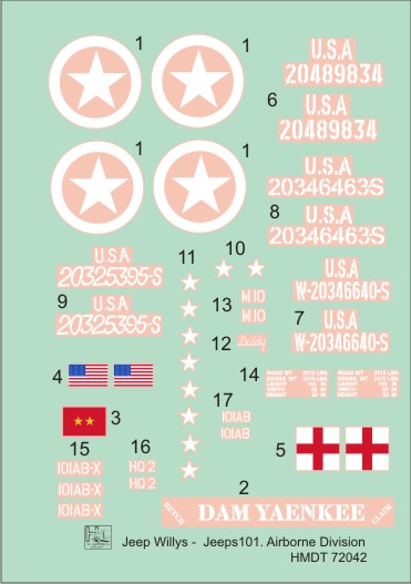 HM DECALS - 1/72 Decals Jeep Willys MB/Ford GPW 101 Airborne Division