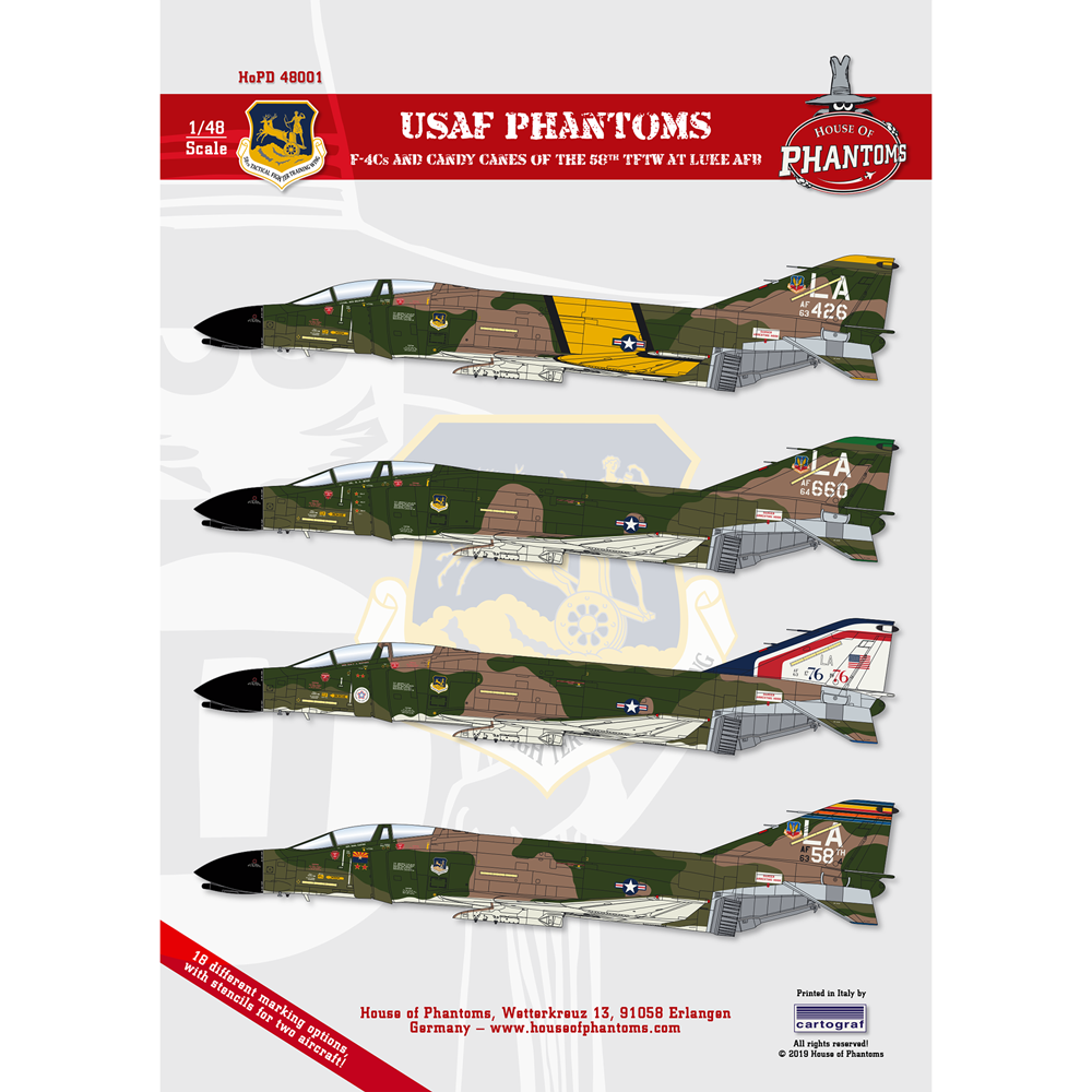House Of Phantom Decals - 1/48 USAF Phantoms McDonnell F-4C Phantoms and Candy Canes of the 58th Tftw at Luke AFB