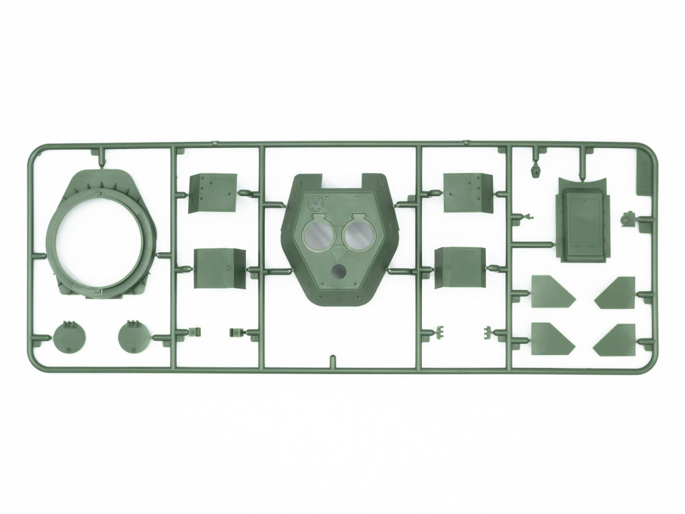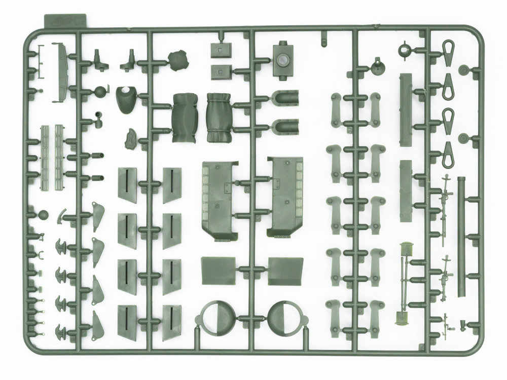 ICM - 1/35 Soviet -34/76 WWII Soviet flamethrower tank The OT-34/76 tank was a serial modification of the T-34/76 tank with a flamethrower installed in the frontal sheet of the hull. Aiming the flamethrower at the target was carried out by turning the entire tank. In the armored case, a 105-liter container was installed for a special fire mixture, it was located at the site of the radio station, which in turn was removed or placed in the tower. At the same time, the crew of the tank was reduced to three people. The use of flamethrower tanks in close combat made them a dangerous enemy, and had a strong psychological effect on the enemy. OT-34/76 retained its main armament (76.2 mm cannon) and could be used as a conventional tank. Several tank factories were engaged in the production of flamethrower OT- 34/76 in the Soviet Union, among which was the factory number 183 in Nizhny Tagil.