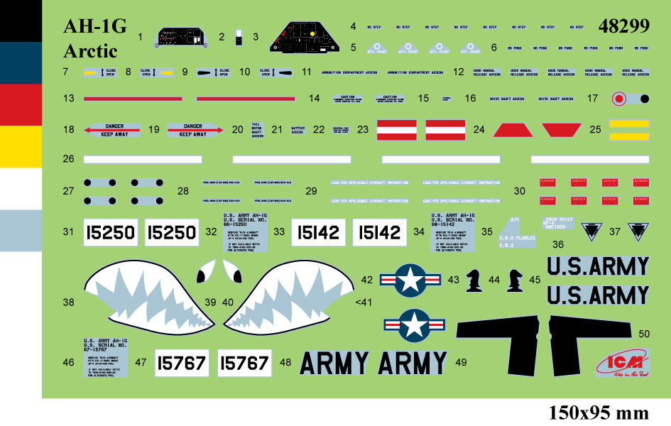 ICM - 1/48 Next release! Just announced! Bell AH-1G 'Arctic Cobra', US Helicopter In March 1965, Bell began development of an attack helicopter for air support of troops. The design was carried out using the units and systems of the Bell UH-1 Iroquois multipurpose helicopter, which had proven itself in operation. The new helicopter, called AH-1G (Attac Helicopter 1 Gunship), began to enter the U.S. Army in June 1967, and in September it began to be used in combat operations in Vietnam. Lightweight steel armor was used in the design of the helicopter to protect the crew and the most critical areas and units from ground fire. The design of the tail beam was reinforced to withstand 23 mm shells. After the end of hostilities, the helicopters continued to be in service with the US Army. Some of them were tested and operated in Alaska, in particular at Elmendorf and Fort Richardson bases. These helicopters were painted in bright white and red colors and became known as 'Arctic Cobras'.