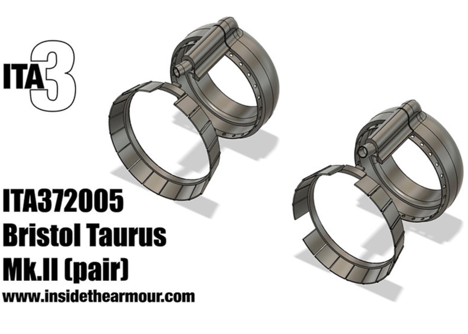 Inside the Armour - 1/72 Taurus II Engines set of 2 maintenance version for Airfix Bristol Beaufort. A set of two 1/72 handed Bristol Taurus II engines for the Airfix Bristol Beaufort, designed to show the engines with covers removed. Includes engines, front cowl/radiator, exhausts and ring of cowl flaps for Airfix