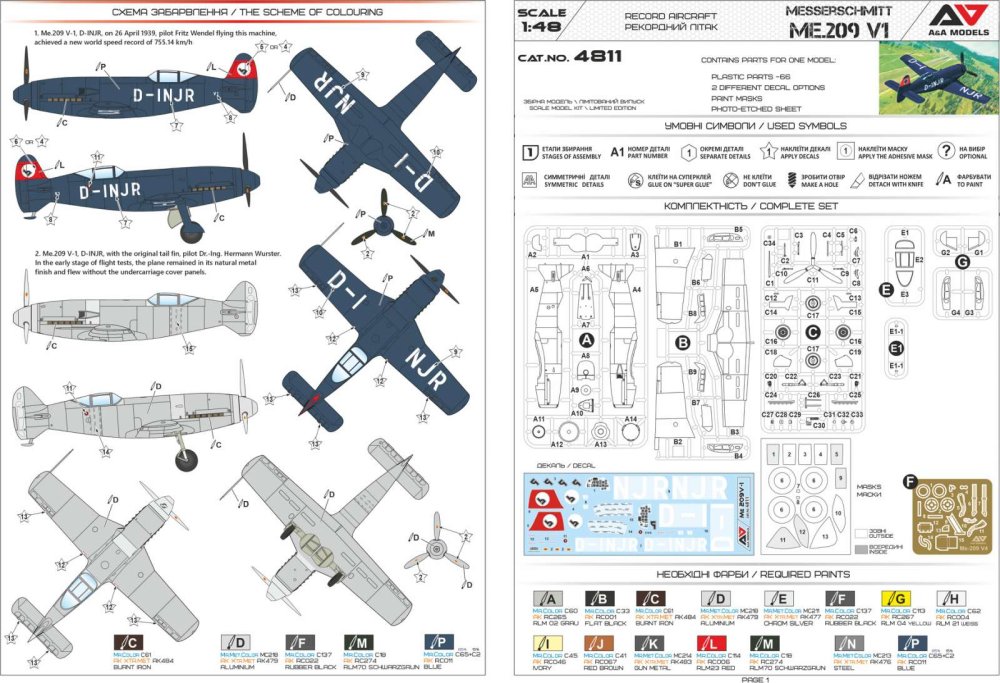 A&A MODELS - 1/48 Me-209V1 Speed record prototype (2x camo)