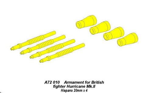 Aber - 1/72 Armament for Hawker Hurricane Mk.II Hispano 20mm x 4 for Academy, Airfix, Arma, Az Model,Legato newer range, FLY, FROG, Hasegawa, Hobby 2000, Hobby Boss, Heller, Humbrol, Keil Kraft, MisterCraft, Omega Models, Matchbox, Revell and Smer