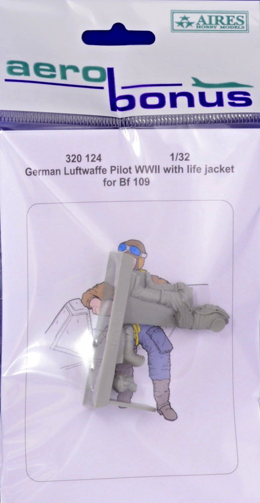 Aerobonus - 1/32 German Luftwaffe Pilot WWII with life jacket for Messerschmitt Bf-109 (for Eduard, Hasegawa, Revell and Trumpeter kits) [Bf-109E-3 Bf-109E-4 Bf-109E-1 Bf-109K-4 Bf-109G-4 Bf-109G-6 Bf-109G-10 Bf-109G-14 Bf-109F-2 Bf-109F-4]