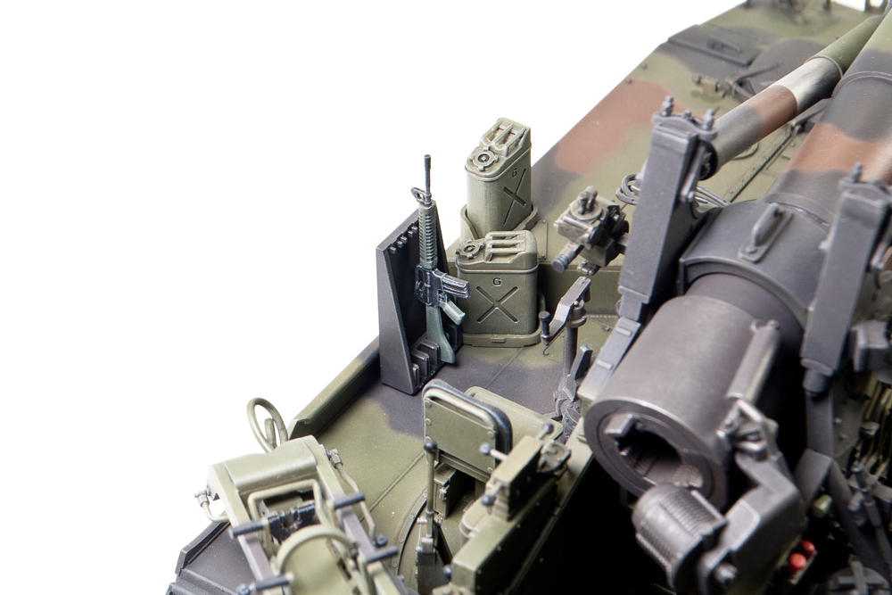 203mm howitzer with adjustable pitch angle. Comes with T65K2 & T91 rifles, plastic injection A2 barrel, cab interior structure and movable hatch. Choice of 8 markings/paint schemes. (155/203mm Howitzer Round & Stowage Case available separately, ref PKAF35017).