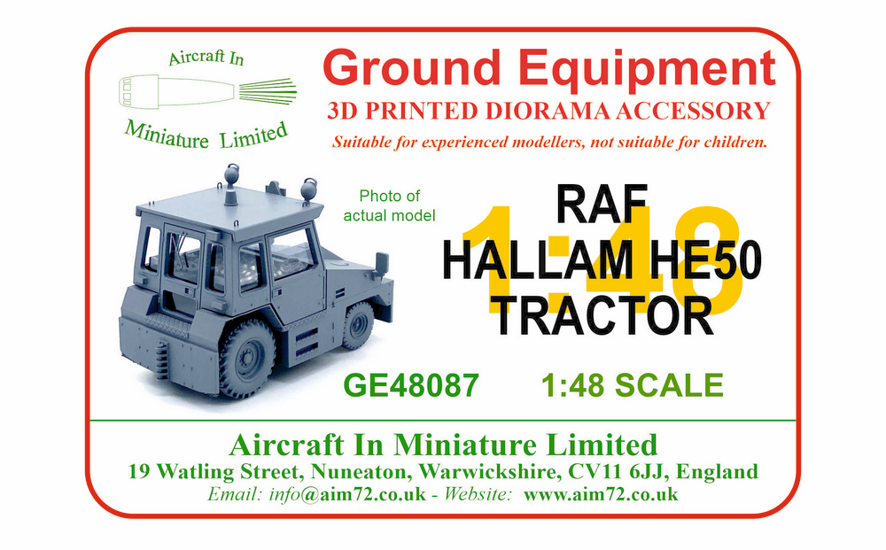AIM - 1/48 Raf Hallam HE50 tractor highly detailed 3D printed resin kit with full interior suitable for use with Italeri IT2813, and Aim Ground Equipment GE48071 towbar, plus many more aircraft types.