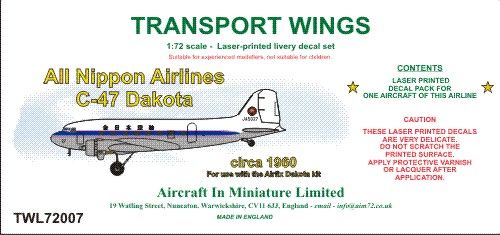 AIM - 1/72 All Nippon Airways C-47 Dakota, circa 1960 decal set.