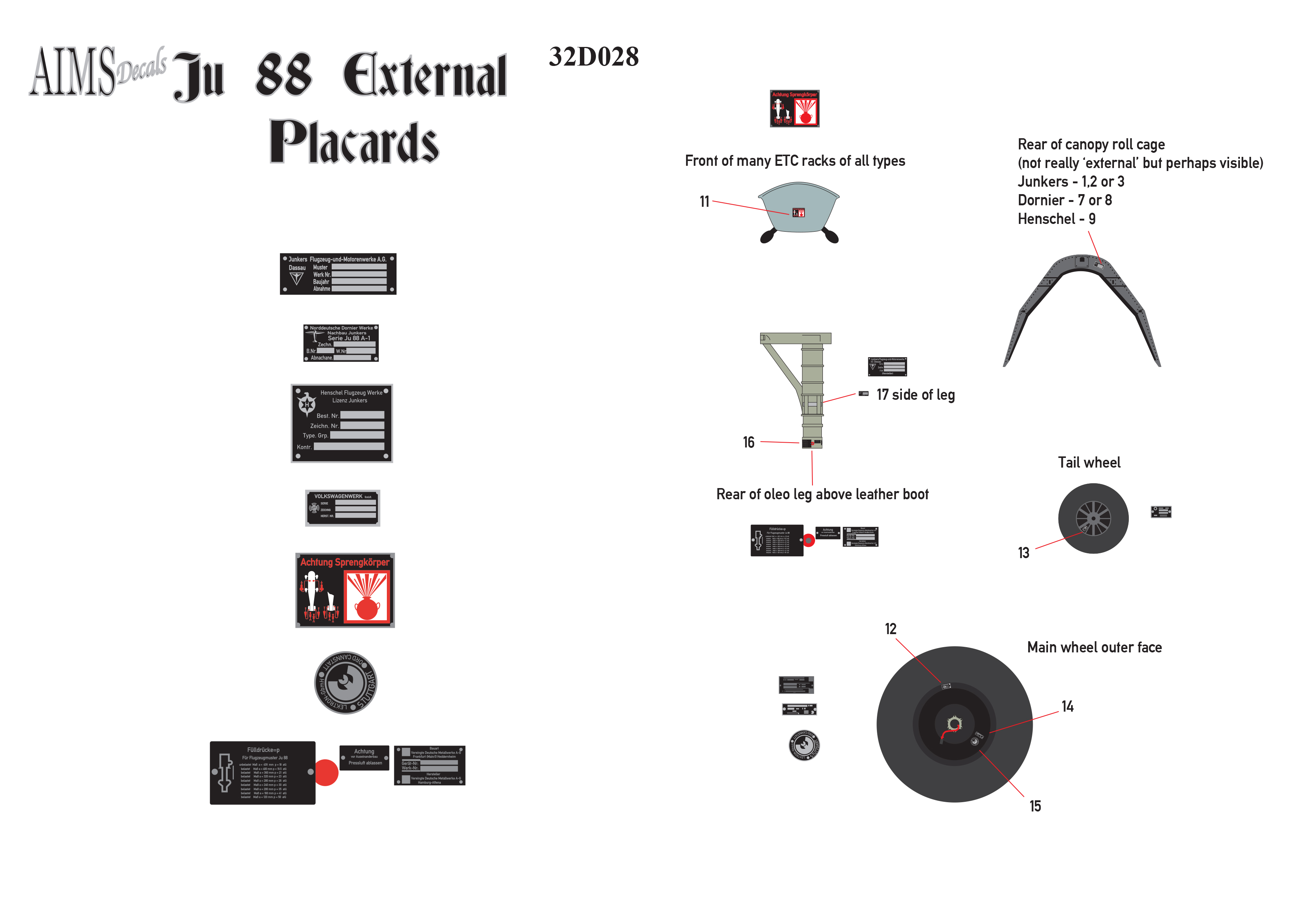 Aims - 1/32 Junkers Ju-88 External Placards (for Revell Ju-88A-1 and Ju-88A-4 kits plus any Aims conversion kits)