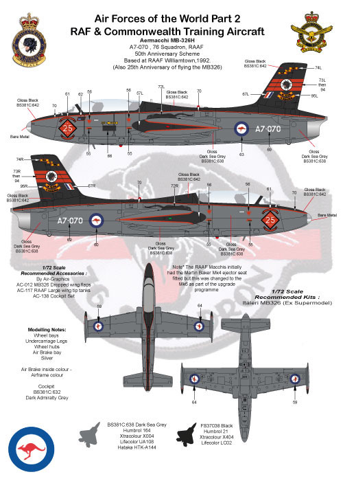 Aermacchi MB326H, A7-070, 76 Squadron Raaf Williamtown 1992 (Black 25th Anniversary scheme)