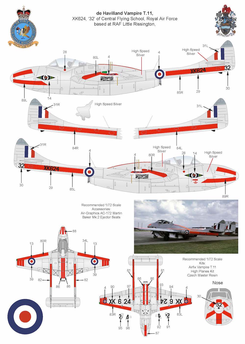 De Havilland Vampire T.11 XK624/32 of Cfs Raf Little Rissington Mid 1960's