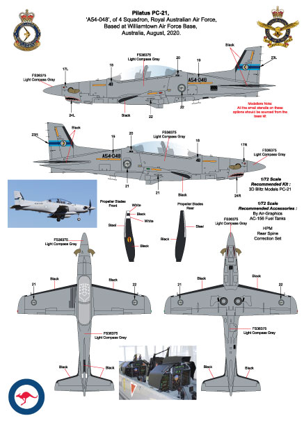 Pilatus PC-21, 'A54-048', of 4 Squadron, Royal Australian Air Force, Based at Williamtown Air Force Base, Australia, August, 2020.