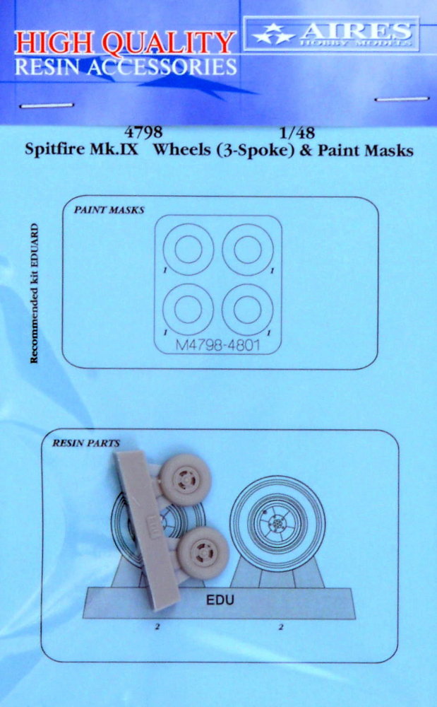 Aires - 1/48 Supermarine Spitfire Mk.IXc/Mk.IXe wheels (3-spoke) &Part38 paint masks (for Eduard kits)