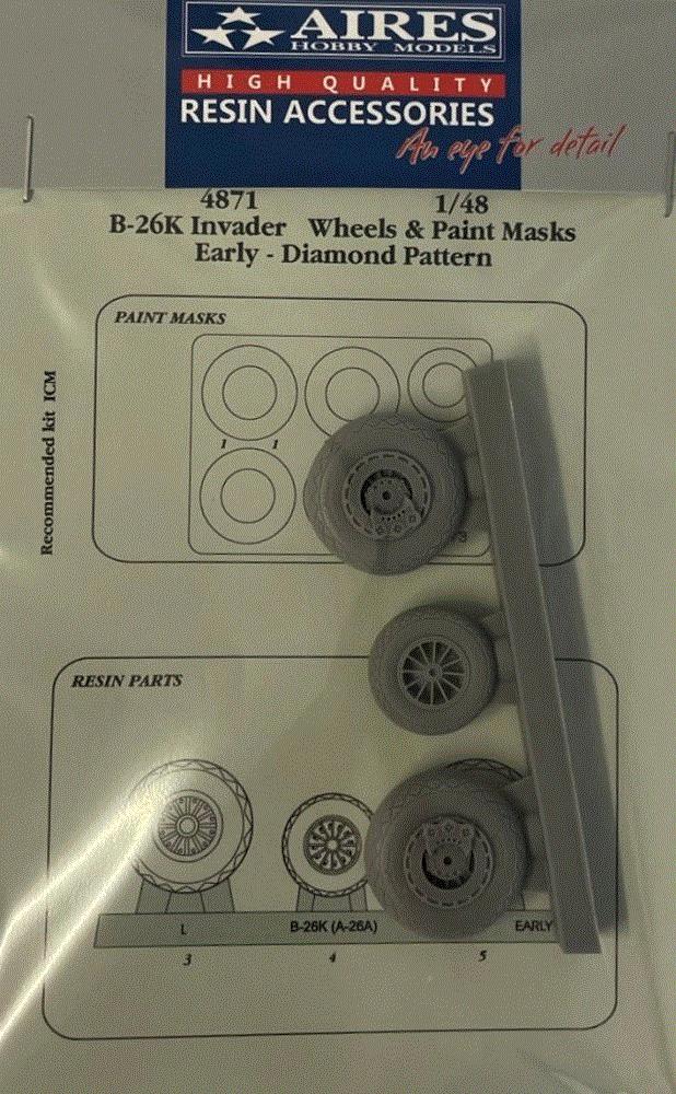 AIRES - 1/48 B-26K Invader early wheels Diamond pattern & paint masks
