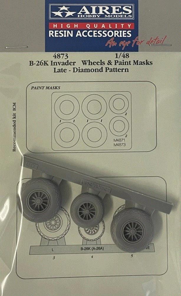 AIRES - 1/48 B-26K Invader late wheels Diamond pattern & paint masks