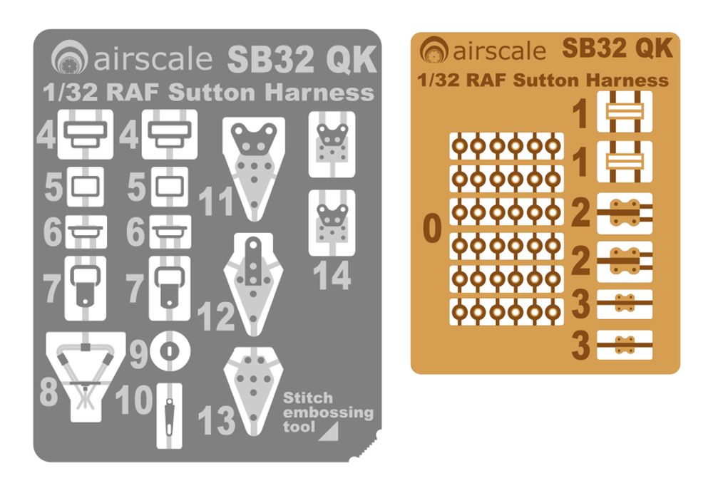Set di imbracature Sutton per cabine di pilotaggio RAF della Seconda Guerra Mondiale in scala 1/32.