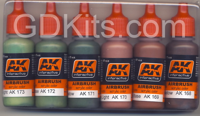 AK Interactive - German Green & Brown Modulation Set - Questo set contiene 6 colori acrilici appositamente progettare per i veicoli tedeschi con un camuffamento tre tono. Qui sono inclusi 3 colori per modulare il tedesco Brown e altri 3 colori per il verde tedesco.