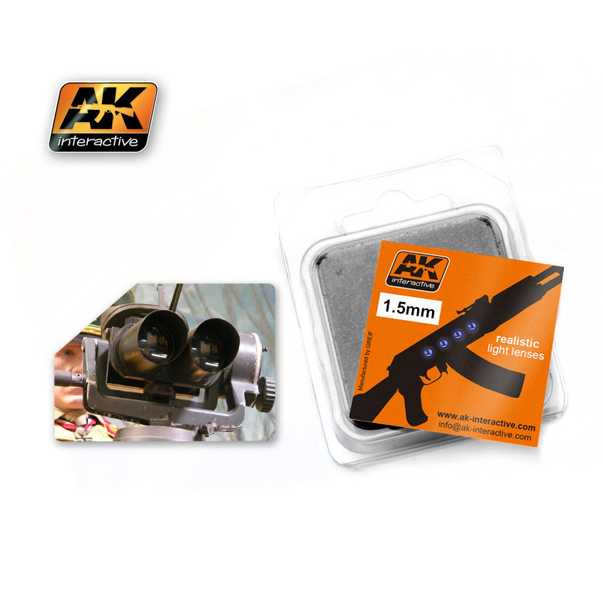 AK Interactive - OPTIC COLOUR 1,5mm New lenses of all sizes for all types of sights, lights, optics, etc. on any vehicle. The vast array of different size lenses are the easiest and most realistic way to represent lights on ythe model. All you have to do is select which size and/or color lenses you want to use and just stick them to ythe model with super glue. That Simple. AK Lenses are the professional?s choice for super realistic representation of lights on ythe model.