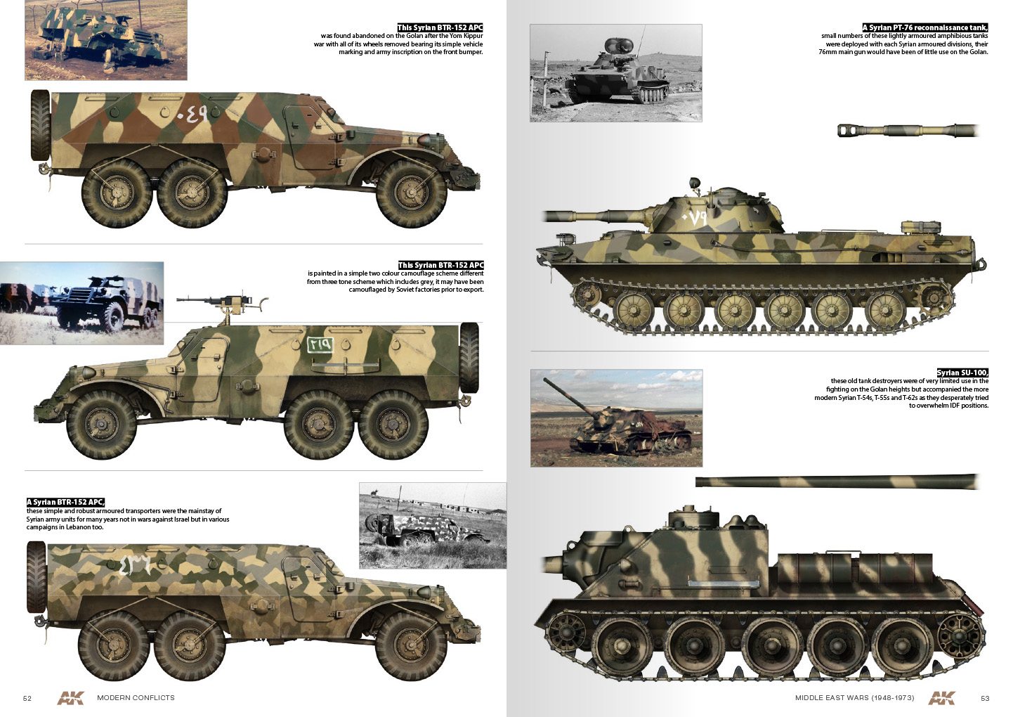 The book contains high quality color renderings showing the many camouflage patterns used on these vehicles by Egyptian, Jordanian , Algerian, Syrian or Israel armies in this period.